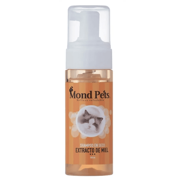 Shampoo Espuma en seco, formulado con extracto de miel, ideal para desodorizar y limpiar sin enjuagar el pelaje de tu gato.